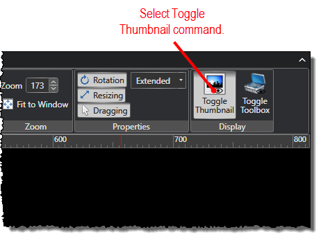 Click to deselect the Toggle Thumbnail command to hide the thumbnail viewer.