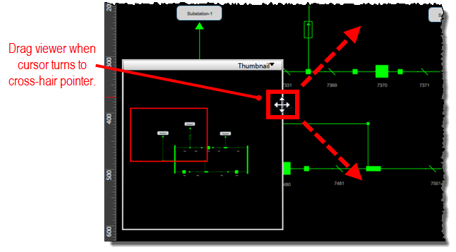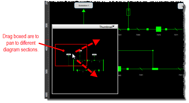 The boxed area inside the viewer shows the section of the diagram that is in view on the canvas. Click and drag the boxed area inside the viewer to pan to different sections of the diagram. The diagram moves simultaneously to show the corresponding section in the diagram.
