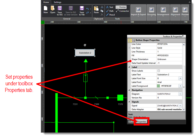 While the pop-up properties editor provides easy visual editing of common properties of drawn objects, the Properties tab in the free-form drawing toolbox provides a comprehensive editor for all properties that pertain to the selected object.