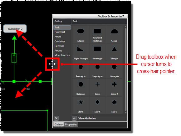 To use the free-form drawing toolbox to add objects and properties to the canvas, you must make sure the toolbox is visible.
