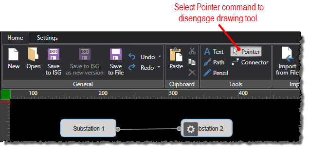 Note: Path, pencil, and connector drawings are not commonly used for creating One-Line diagrams. The object gallery provides most of the objects you need for drawing diagrams. These supplemental tools are provided to offer flexibility in unique drawing situations.