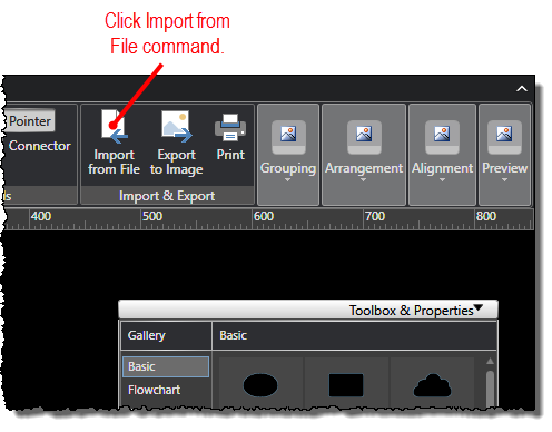 Under the Home tab, click the Import from File command.