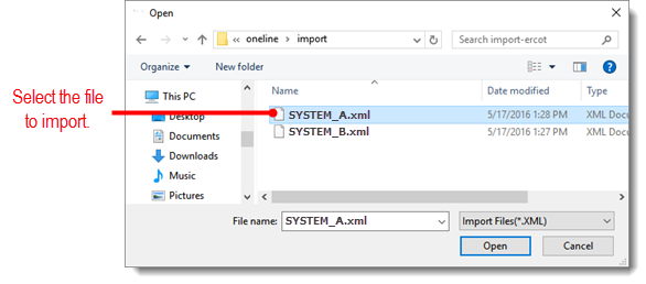 When the pop-up window opens to select a file, browse to and select the diagram file you want to import.