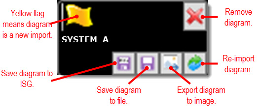 Save to ISG: Save the corresponding diagram to your ISG. When you click this command, the diagram is automatically saved to your ISG with the same diagram name and description that was imported.