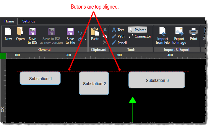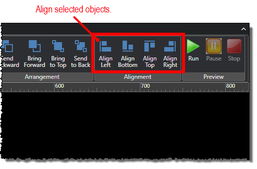 As you add objects to a diagram, you might want to align the objects a specific way against one another. For example, you might want multiple buttons to be aligned along their tops so they appear in a straight line across the diagram.