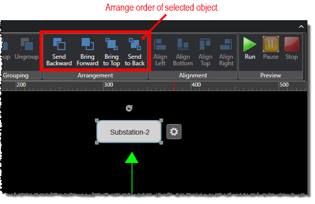 As you add objects to a diagram, you might find that you need to arrange the objects in a specific order so that some objects are placed in front of others. For example, you might draw several buttons, arrows, and lines and then want to place the buttons in front of the lines and arrows.