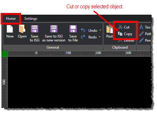 - Copy: Copies the selected object while keeping the original on the diagram, and saves the copy to the clipboard for later use.