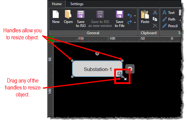 Note: If the handles for resizing the object are not available, then resizing is locked. You can unlock resizing on the Settings ribbon.