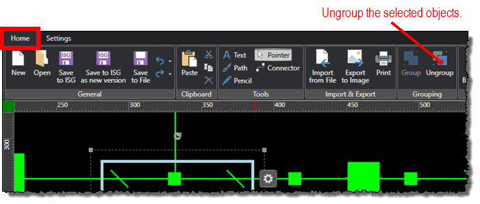 Under the Home tab, click the Ungroup command.