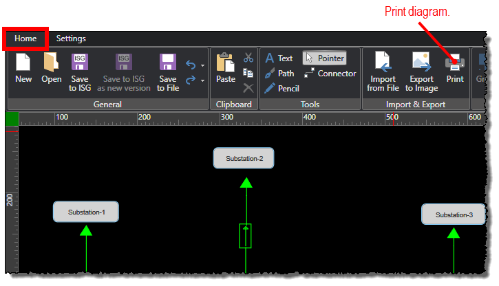 One-Line Diagram Kit allows you to perform standard print operations with an open diagram.